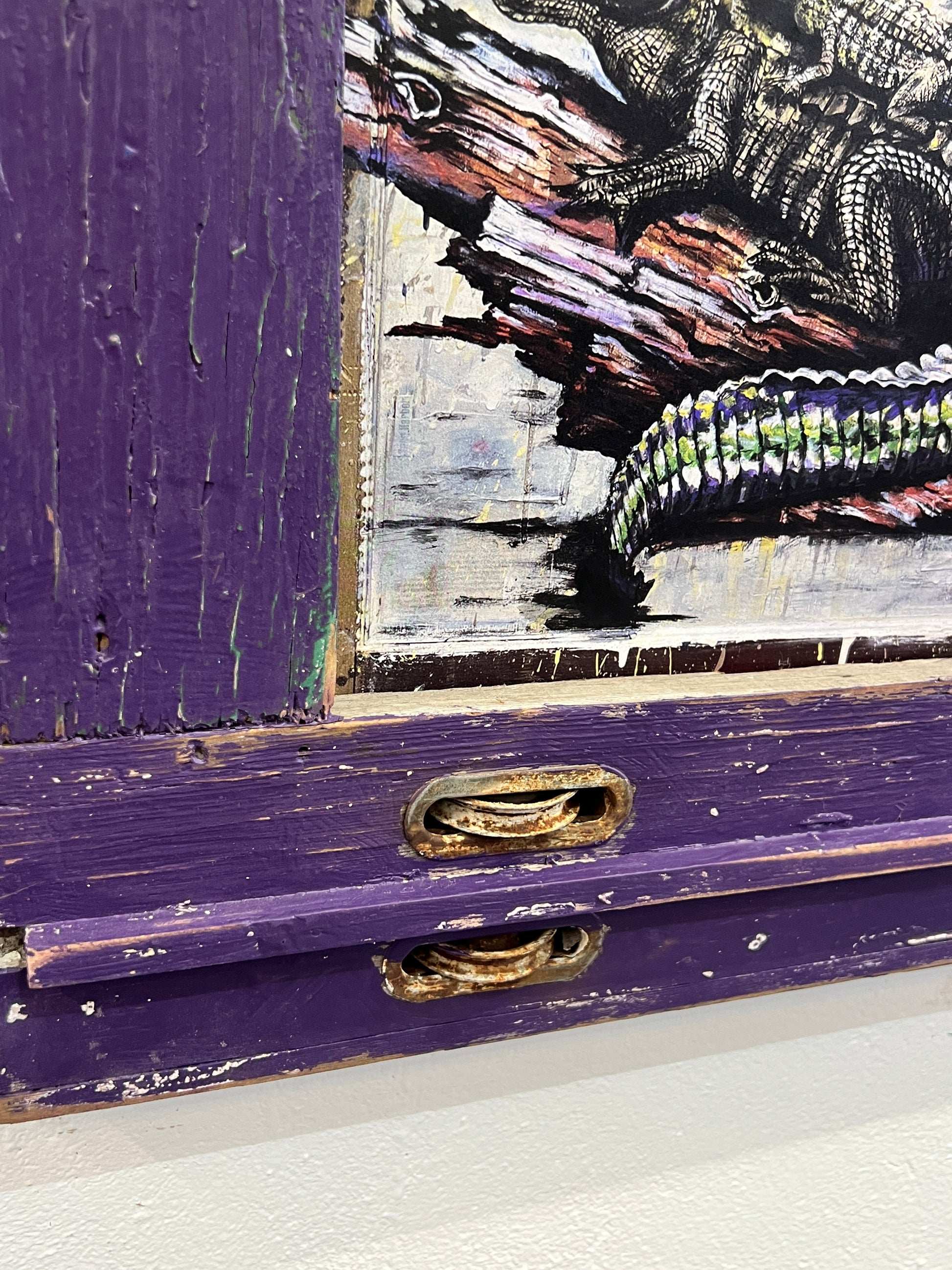 Mama & Baby Gator- Reworked Giclee with Custom Reclaimed Wood Frame
